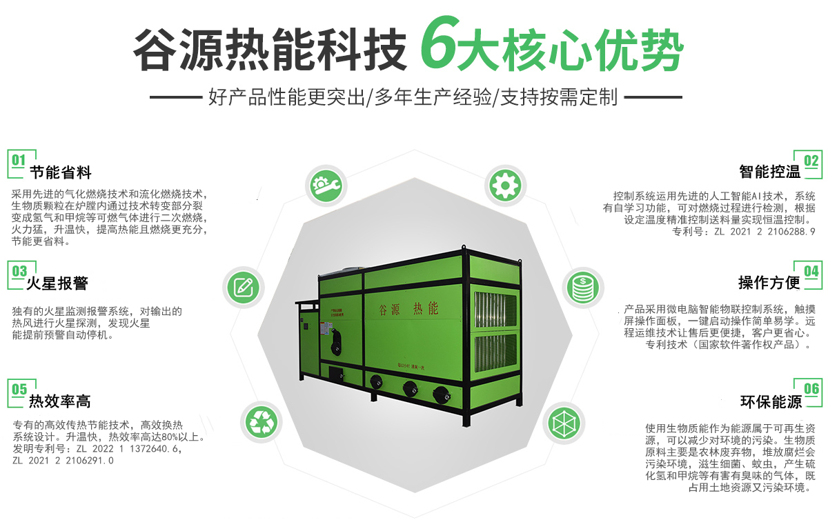 安徽谷源熱能科技有限公司坐落于大別山腳下的紅色革命老區(qū)——六安,是一家專業(yè)從事熱源產(chǎn)品的研發(fā)、生產(chǎn)、銷售、服務(wù)于一體的綜合性企業(yè)。 本公司主要生產(chǎn):糧食烘干用生物質(zhì)環(huán)保熱風爐、生物質(zhì)稻殼熱風爐、生物質(zhì)顆粒取暖爐、浴室用生物質(zhì)顆粒爐、涂裝生產(chǎn)線用生物質(zhì)顆粒爐、燃油熱風爐、天然氣熱風爐等熱源產(chǎn)品,公司產(chǎn)品采用微電腦控制,可自動點火,根據(jù)設(shè)定溫度自動進料、自動控溫。使用燃料為生物質(zhì)顆粒,屬于可再生資源,相對運行成本低,節(jié)能環(huán)保。 我們以顧客為導向,一直致力于以提高產(chǎn)品質(zhì)量、降低客戶使用成本、節(jié)能環(huán)保為研發(fā)目標,不斷創(chuàng)新。 公司秉承“用心服務(wù),客戶至上;質(zhì)量為本,精益求精!”的經(jīng)營理念,以“節(jié)能環(huán)保”為使命,以“綠色燃料”為保障,以“先進燃燒技術(shù)”為支撐,繼續(xù)推進節(jié)能環(huán)保事業(yè)不斷向前發(fā)展。為改善能源結(jié)構(gòu),打造低碳城市,創(chuàng)建環(huán)境美好資源節(jié)能型社會,做出不懈努力。我們愿意與您真誠合作、共創(chuàng)雙贏,讓我們攜手共創(chuàng)輝煌的明天。竭誠歡迎各界朋友光臨惠顧!